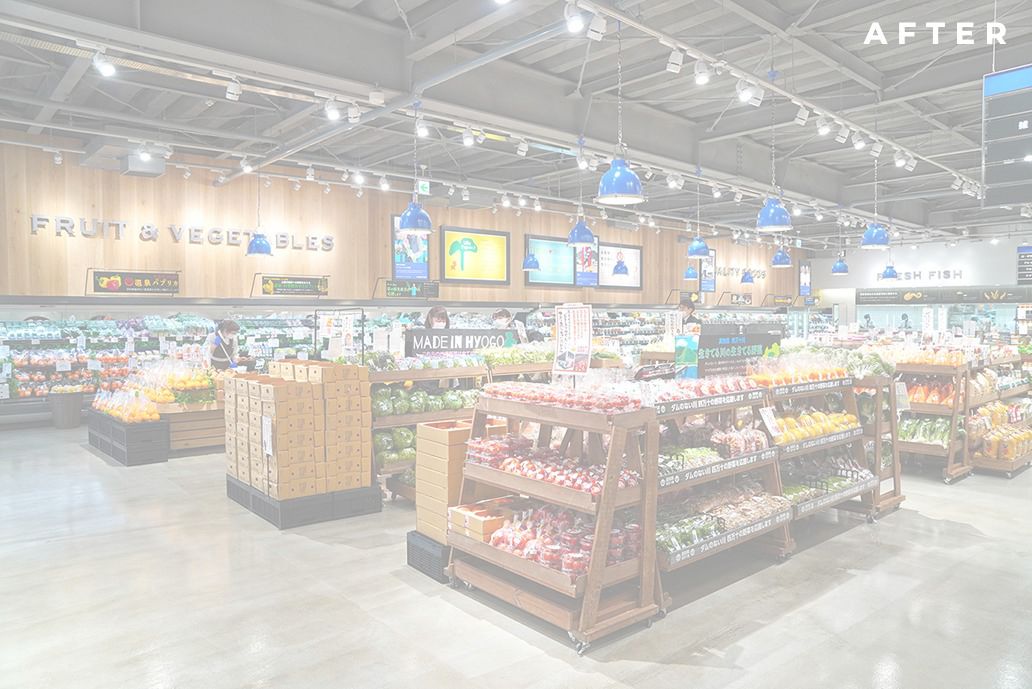 店内は天井を「スケルトン」にしたことで、売場の広さは変わらないものの空間全体に広がりが生まれ、よりゆったりとお買い物を楽しんでいただける店へと生まれ変わりました。